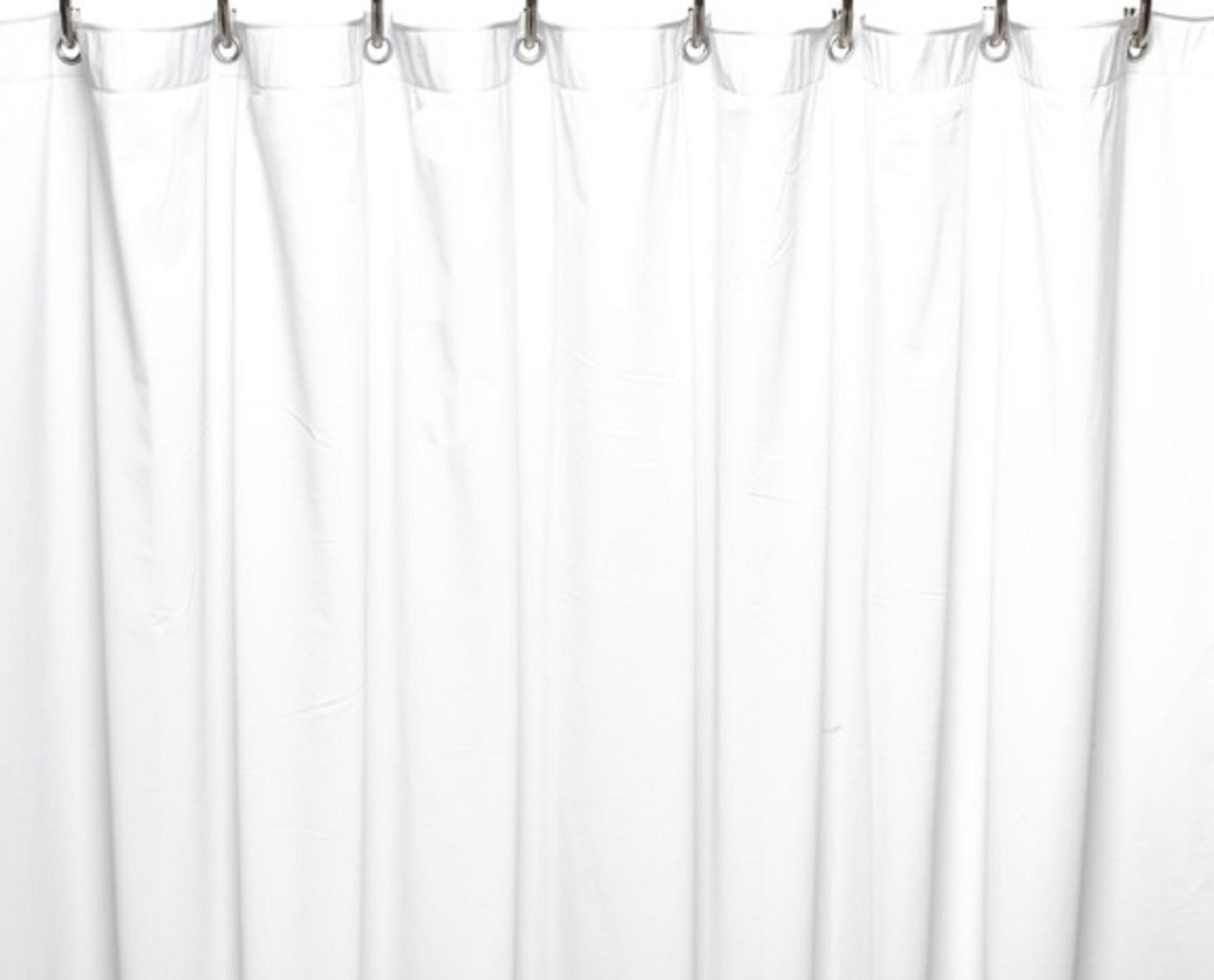 This vinyl shower curtain has metal grommet reinforced holes.